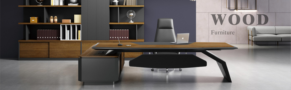 2.4m板式大班臺 鋼架倒角左右互換時尚老板桌EYF-01D24